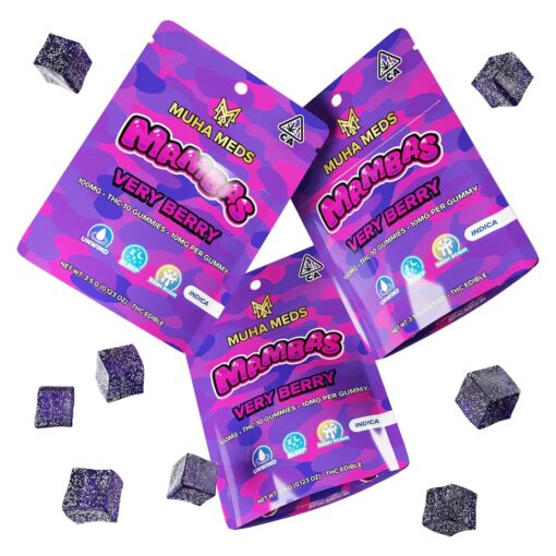 - Muha Med gummies Very Berry | INDICA; Our unique formula packed with all-natural fruits and tastes makes our Very Berry a house favorite. The sweet refreshing flavor of rich berries combined with a zesty zest results in a wonderful, one-of-a-kind experience. This Mambas edibles Indica is a throwback to your youth, like your beloved gummies, but what’s better than eating gummies as an adult and being stoned? Perfect for your day-to-day excursions.